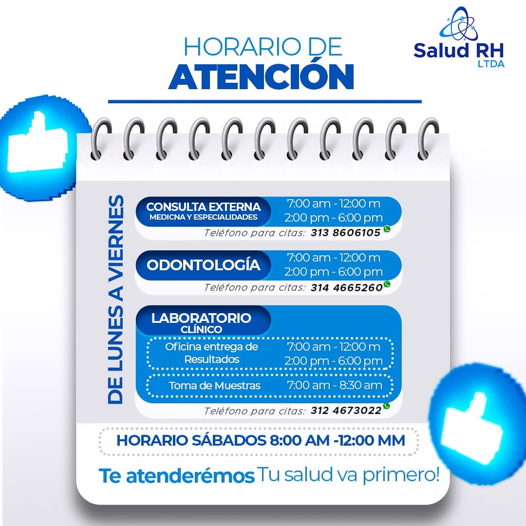 Sede Principal: Calle 8 No. 10 - 64 Sede B: Calle 11 No. 7 - 35 Teléfonos: 6256291 Cel. 310 771 7837 - 311 320 6886 email: salud.rh@hotmail.com San Viente de Chucuri